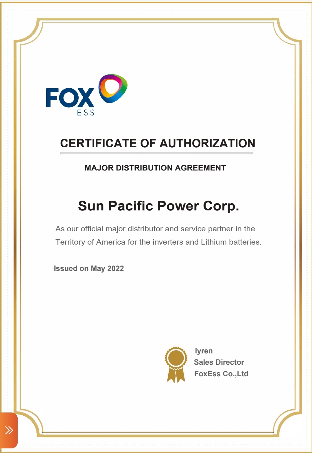 Sun Pacific Holding Corp. SNPW is pleased to announce its wholly owned subsidiary Sun Pacific Power Corp has launched a new weblink for FoxESS Co. See all options for Sales and Marketing.